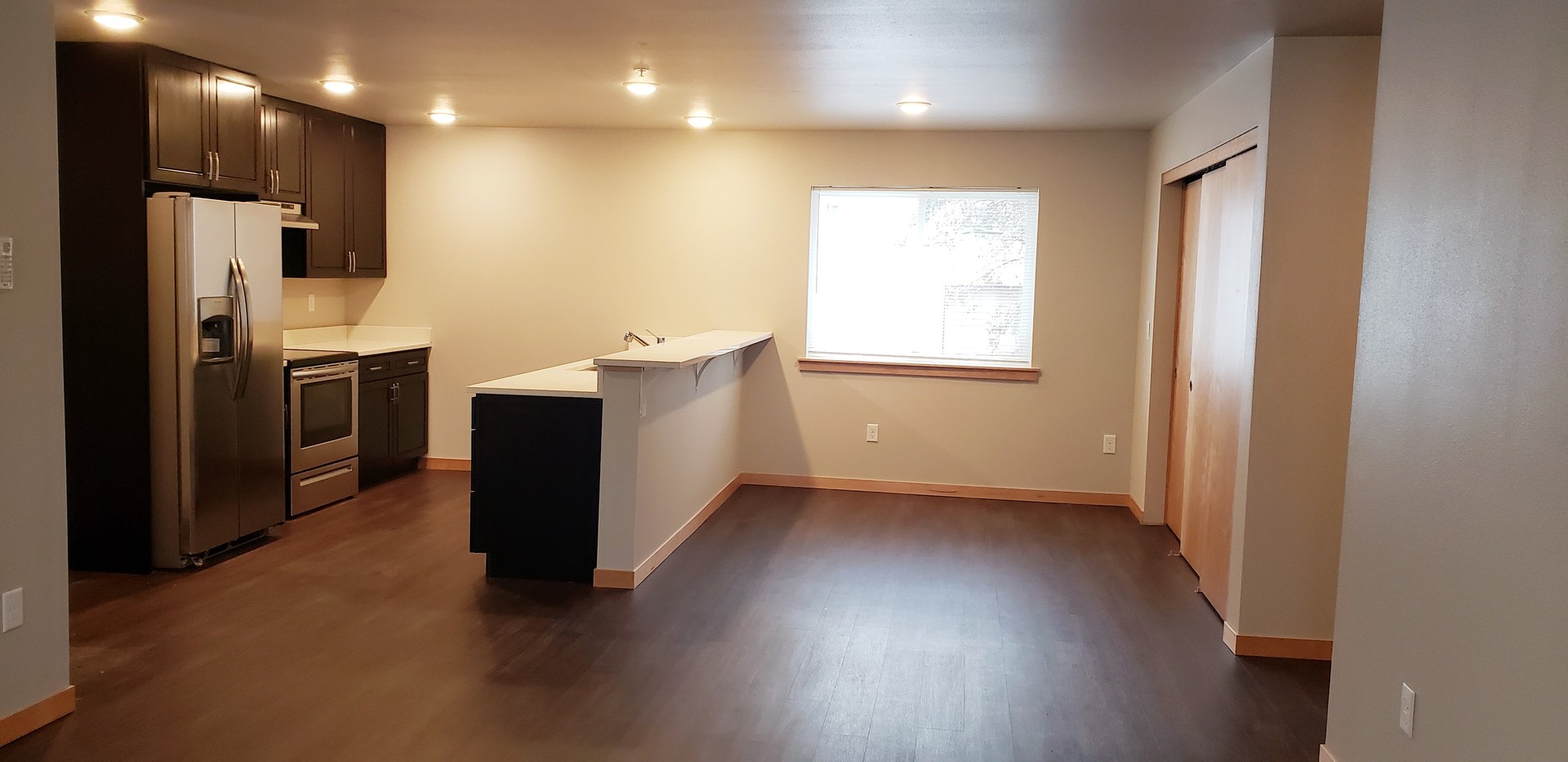 The kitchen comes fully equipped with stainless steel appliances, including a dishwasher and garbage disposal, making everyday living convenient and efficient.