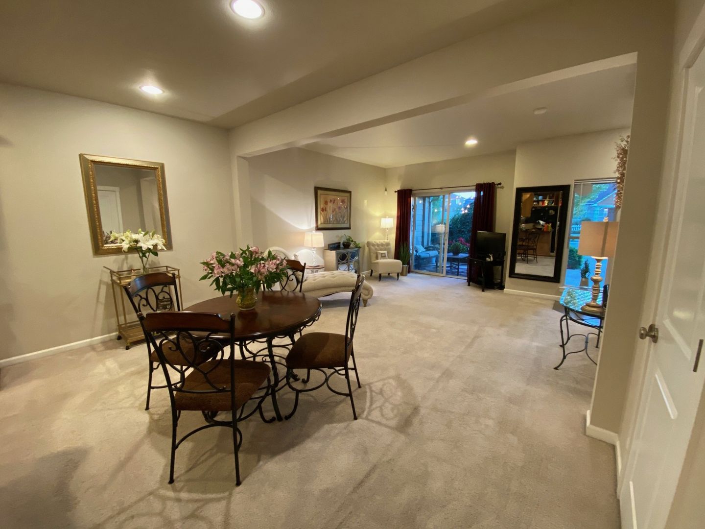 The living room offers sliding glass door access to a covered front patio—perfect for relaxing and enjoying the fresh air.