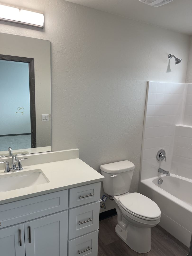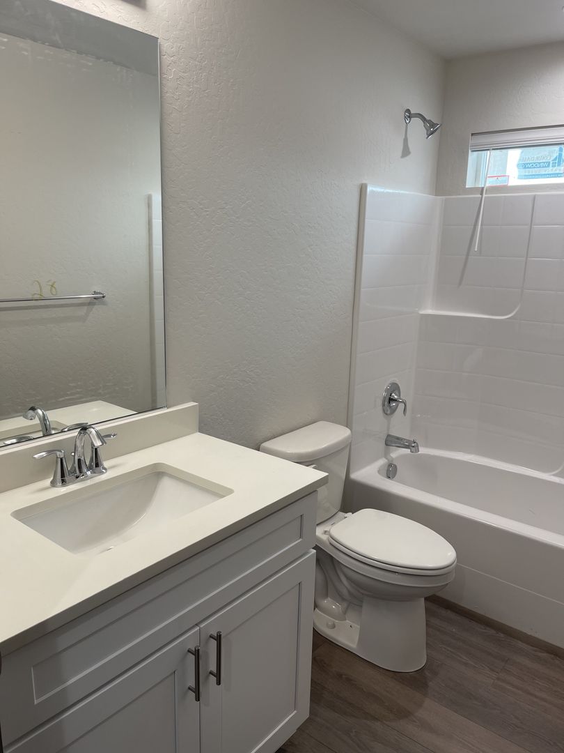 Master Suite: Large bedroom with ensuite bath featuring a tub/shower combo