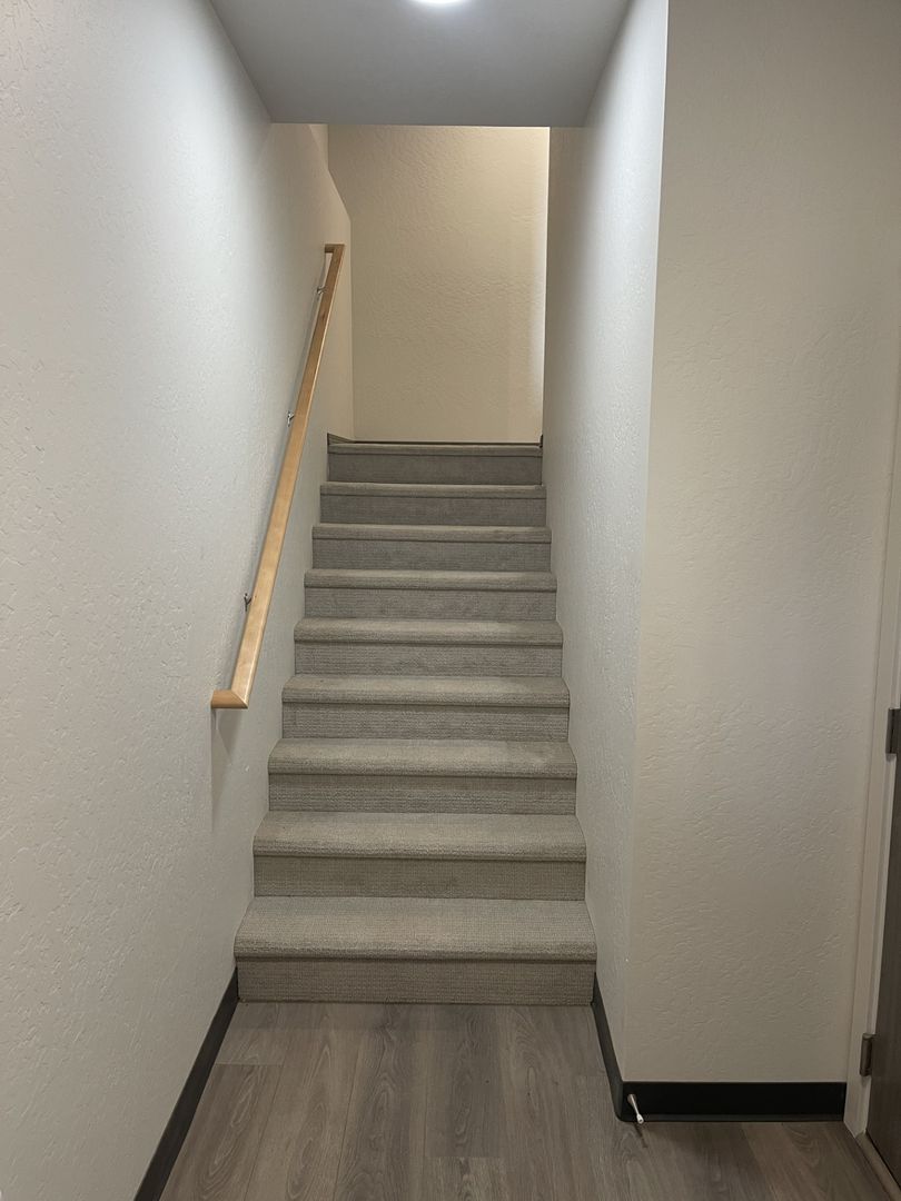 Stylish Finishes: Durable LVP flooring with plush carpet in bedrooms for added comfort
